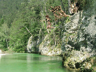 Sehr angenehme Temperaturen haben uns gleich beim Wasserfall dazu verlaßt uns ein wenig zu erfrischen und den Kletterer und Wasserfall - Abseilern bei Ihren Hobby zuzusehen.